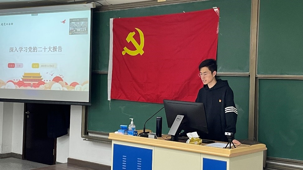 王晗带领支部成员对党的二十大报告进行学习。他以设问形式,从“如何理解党的二十大的重大意义”、“如何理解党的二十大主题”、“如何理解党的二十大报告提出的 ‘三个务必’ ”、“如何理解中国式现代化的本质要求”、“如何理解未来五年我国发展的主要目标任务”等方面展开阐述,使支部成员们充分认识党的二十大的重大现实意义和深远历史意义。