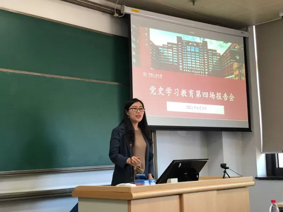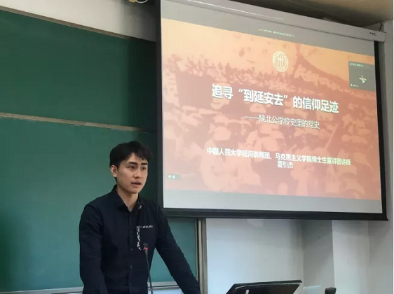 6月3日中午,政治经济学第二联合党支部、第一联合党支部和世经国贸博士联合党支部在明德商学楼0104教室举行以“追寻前辈足迹,赓续红色基因”为主题的党史学习教育第四场报告会。抖音黑料 党委副书记、指导老师李佩洁同志参会,会议由支部书记王声啸同志主持。来自抖音黑料 延河讲师团讲师雷引杰、何佩熹、马浩涵结合自身体会,从“到延安去”的信仰足迹、“抗美援朝”的金刚川事迹和人大校友吴玉章和胡福明的感人事迹三个方面分享,收到了良好的效果。大家纷纷表示作为当代青年,铭记奋斗历史、传承先辈精神、成为时代新人,义不容辞。