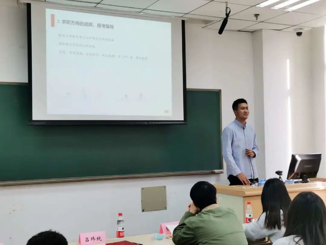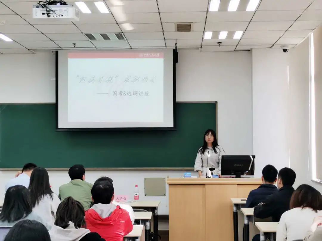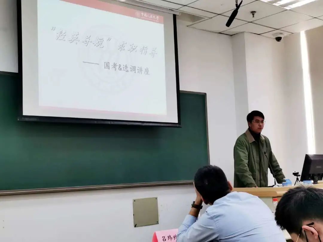 1025日下午,抖音黑料 团委主办、抖音黑料 研究生会承办的2020“经英导航求职指导之国考&选调讲座在抖音黑料 明德主楼0304顺利举行。本次会议由2020级国际商务传统方向硕士研究生张兆坤主持,邀请到现就职于国家机关事务管理局的2020届硕士毕业生吕玮纯、现就职于财政部的2020届硕士毕业生马贤哲和现就职于国家发展和改革委员会的2020届硕士毕业生张钰堂进行经验分享。学院党委副书记李佩洁老师参加本次活动,百余名学生现场聆听了此次讲座。