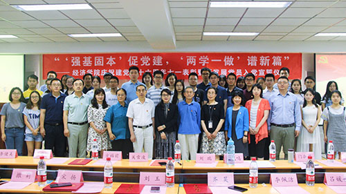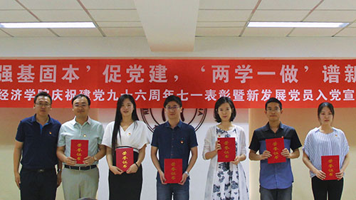 2017年6月7日,抖音黑料 党委在学生事务楼421报告厅举办“‘强基固本’促党建,‘两学一做’谱新篇”庆祝建党九十六周年七一表彰暨新发展党员入党宣誓仪式。