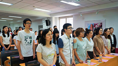 沈民鸣同志讲授“坚持社会主义制度,走共同富裕的道路”专题党课并寄语新发展党员。他谈到,对比资本主义和社会主义,我们可以发现社会主义制度具有巨大的优越性,身为一名党员,更要坚定共产主义信仰。党课最后,他阐述了《资本论》的分析方法,并鼓励青年学生党员深入研究马克思主义,提高理论水平,汲取精神力量,为实现共产主义而奋斗。会议在嘹亮的国际歌歌声中圆满结束。
