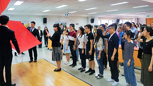 进入庄严神圣的宣誓环节,关雪凌同志带领本年度全体新发展党员进行入党宣誓。新发展党员面对党旗,接受精神的洗礼,许下庄重的誓言,表达对党的忠诚和为共产主义事业奋斗终身的决心。在场的正式党员也重温入党誓词,坚定理想信念。