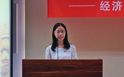 新发展党员代表2015级国民经济管理本科班党支部高蕾发言。她表示,作为一名党员,要把入党誓词作为终身追求,向组织宣誓,全心全意为人民服务。同时,新发展党员更要以优秀党员为榜样,向更高水平看齐,完善自我,提高自我,不辜负党和人民的信任。