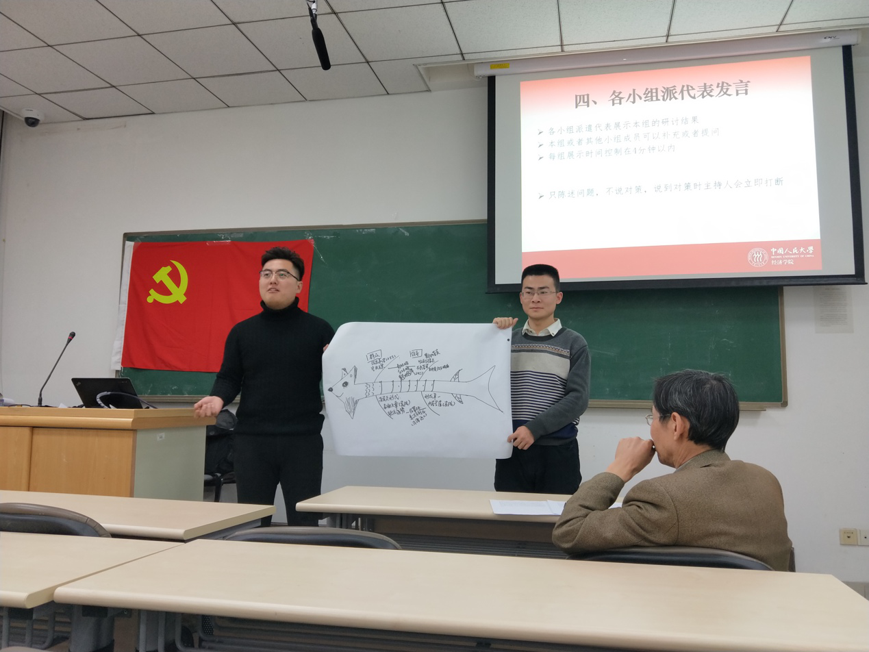 小组展示后,韩玉军教授进行点评。韩老师认为本次活动探讨的四个问题具有现实意义。他提出党员要统一认识,统一思想,坚守党的优良传统。韩老师结合自身调研经历,对支部成员提出建议,希望支部成员提高团队协作能力,凝聚集体智慧,学会表达和沟通。