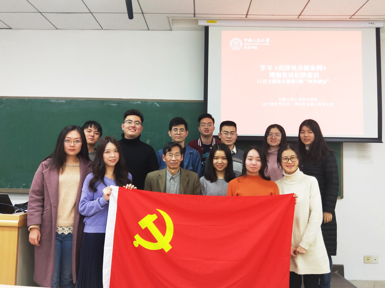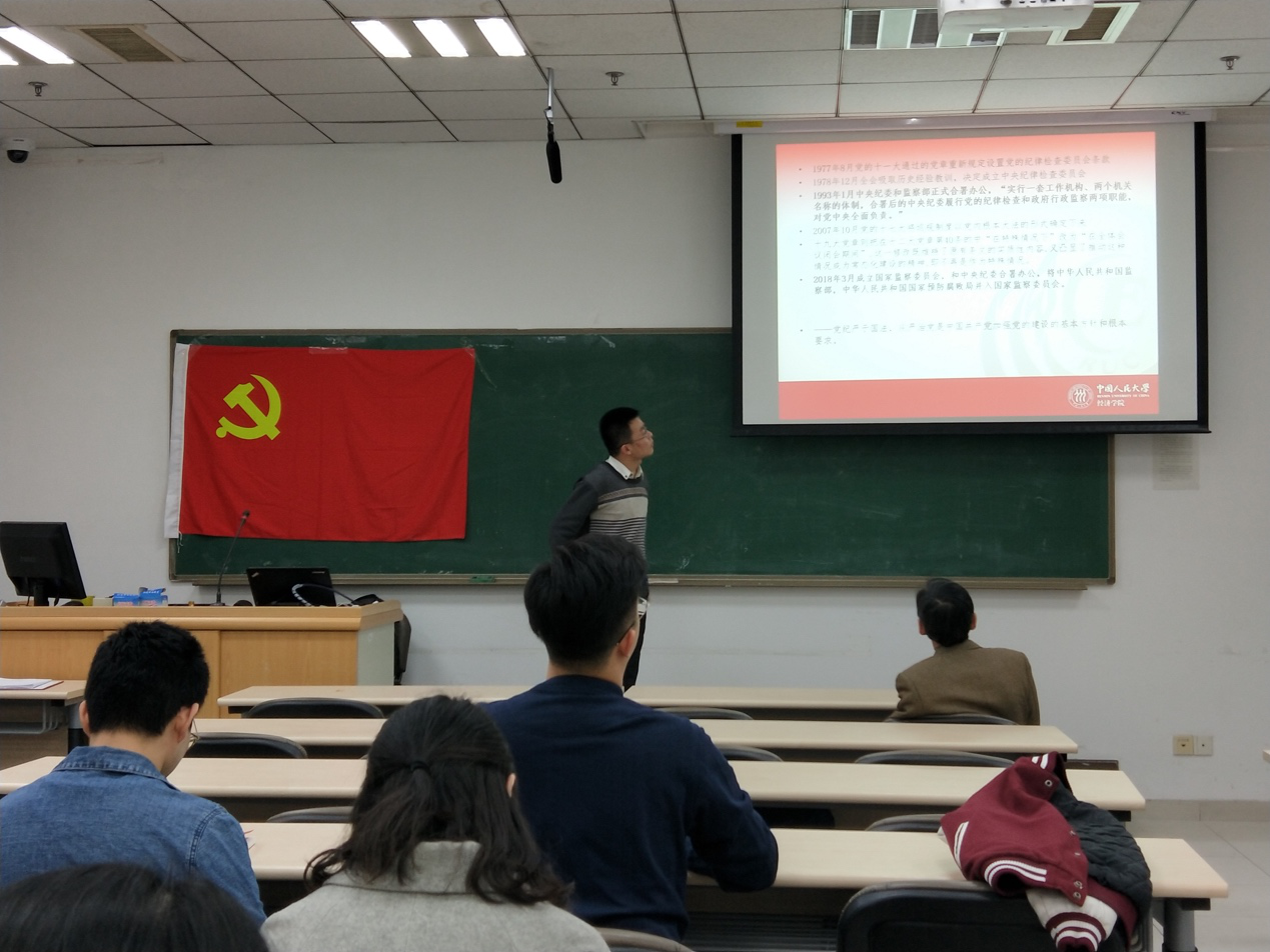 为学习贯彻习近平新时代中国特色社会主义思想和党的十九大精神,增强党员纪律意识,发挥基层党支部教育党员的作用,11月21日,2017级世界经济·国际贸易硕士班党支部在明德商学楼0208教室召开“准绳以知平直,规矩以知方圆”主题党日活动,主持人为党支部书记王芝清同志。抖音黑料 党委委员韩玉军教授参与并指导活动。