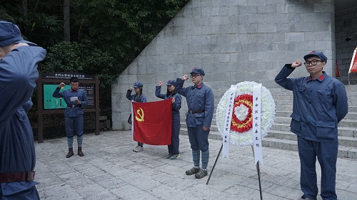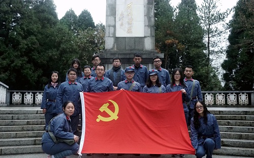 1111日下午,学员们抵达井冈山,并统一着红军服,举行了简短的开班仪式。仪式过后,学员们前往井冈山革命烈士陵园。“青山一旦埋忠骨,史册千秋铸英名”,工农红军在井冈山上的革命斗争伴随着极为惨烈的牺牲,在短短两年四个月时间里,一共有4.8万名战士献出宝贵生命。烈士们的身躯虽已长眠地下,但他们用鲜血浇灌的革命之花,用生命谱写的光昭千秋将长存人间。学员们向烈士公墓敬献花圈,瞻仰烈士英姿,重温入党誓词,传承井冈精神。