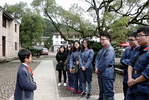 龙江书院是中国人民解放军军政院校的摇篮,为湘赣边界工农武装割据斗争培养了一大批优秀的军政人才。抵达这里,一名身披“志愿讲解”绶带的小朋友吸引了学员们的注意,在他有条不紊、落落大方的讲解中学员们得知,龙江书院近年引入新模式,由当地小学老师指导低年级同学到此志愿讲解。这既让身为红军的后人熟记历史、锻炼能力,也让可以到访的学员经历别样的学习。小朋友们接力讲解,时而高亢激昂,时而沉郁顿挫,全体学员沉浸在厚重的学习氛围中,受益良多。