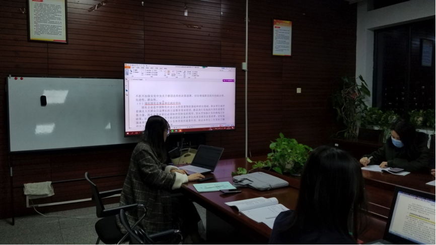 接下来,支部以观看学习视频和书面资料形式学习《2019政府工作报告》(以下简称《报告》)。支部成员一同回顾2018年国家取得的成绩,观看3篇《报告》解读视频。3篇解读侧重点各异,分别为《报告》全面解读、GDP增速解读、发展目标解读。视频中提到“三新”,即“新时代、新经济、新气象”,强调中国发展进入新时代、有着新的经济面貌以及新的经济气象。如今面临新旧动能转换以及深度结构调整与转型,我国不再注重体量的增加,而是质量的提高。我国GDP目标使用区间调控,不再一味强调在某个数字水平上,而是给予浮动区间。此外,《报告》提出大量减税措施及其他民生政策,体现了发展是以人民为中心的高质量发展和推动高质量发展的思想。