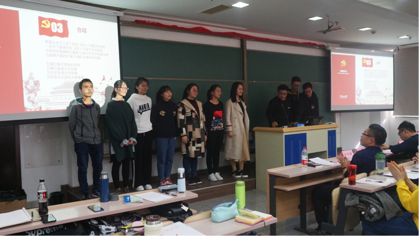 随后,本次培训班的十三个学习小组依次上台展示小组讨论和实践的成果。各组紧扣“不忘初心,深入学习十九大精神;砥砺前行,奋进助力新时代建设”主题,采取主题展示、视频播放、采访回放、组员表演等诸多形式,将理论与实践相结合,从“成果可嘉,未来可期”“新时代大学生的使命”“从经济视角理解党史党建”等多个角度展示小组学习成果,内容丰富精彩,气氛活泼热烈。