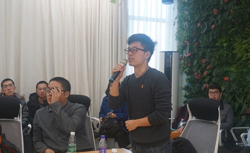 中午12时,师生党员与中粮置地企业代表在会议厅开展校企座谈交流会。吕梦对中粮置地的企业发展和党建工作进行了交流展示,刘太亮就中国北京农业生态谷和中粮智慧农场的发展现状进行了介绍。李际珅对中粮置地和当前房地产行业现状和发展前景进行了介绍,并就当前经济形势下大学生实习就业选择、企业人才培养和高校招聘等内容进行了经验分享。他表示,房地产行业目前仍有很多待开发和创新的领域,仍然充满生机与活力,欢迎在场同学在实习和就业中选择中粮置地和房地产行业。2016级世经国贸硕士班党支部成员罗豪就房地产业转型及国有及私营企业竞争等进行提问,李际珅进行了详细解答。