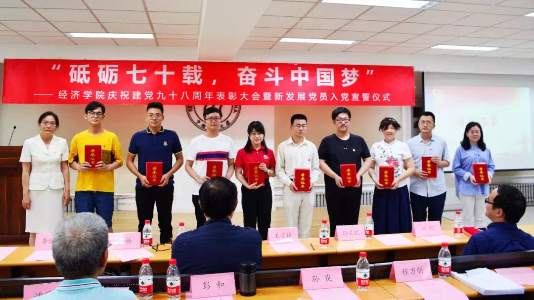 颁奖环节中,刘守英同志、齐畅同志、王晋斌同志、李佩洁同志先后为优秀共产党员、优秀党支部书记、先进党支部、优秀学生党建工作者颁奖。