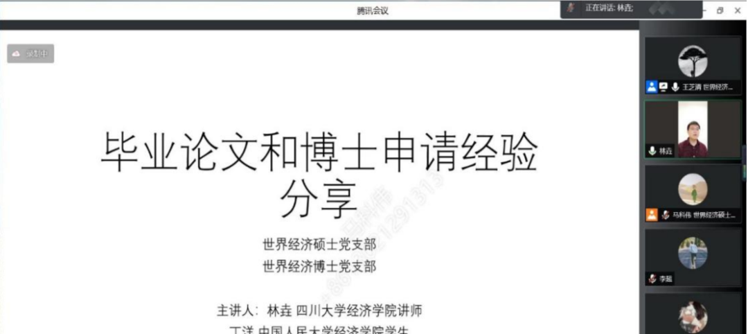 4月17日,政治经济学博士第一党支部,企业经济学、网络经济学博士党支部与世界经济学博士党支部采取线上方式联合开展了以“求职就业经验分享”为主题的党日活动,活动涵盖高校和社科院面试,基金、部委研究部门与地方选调生求职面试等方面的经验分享。