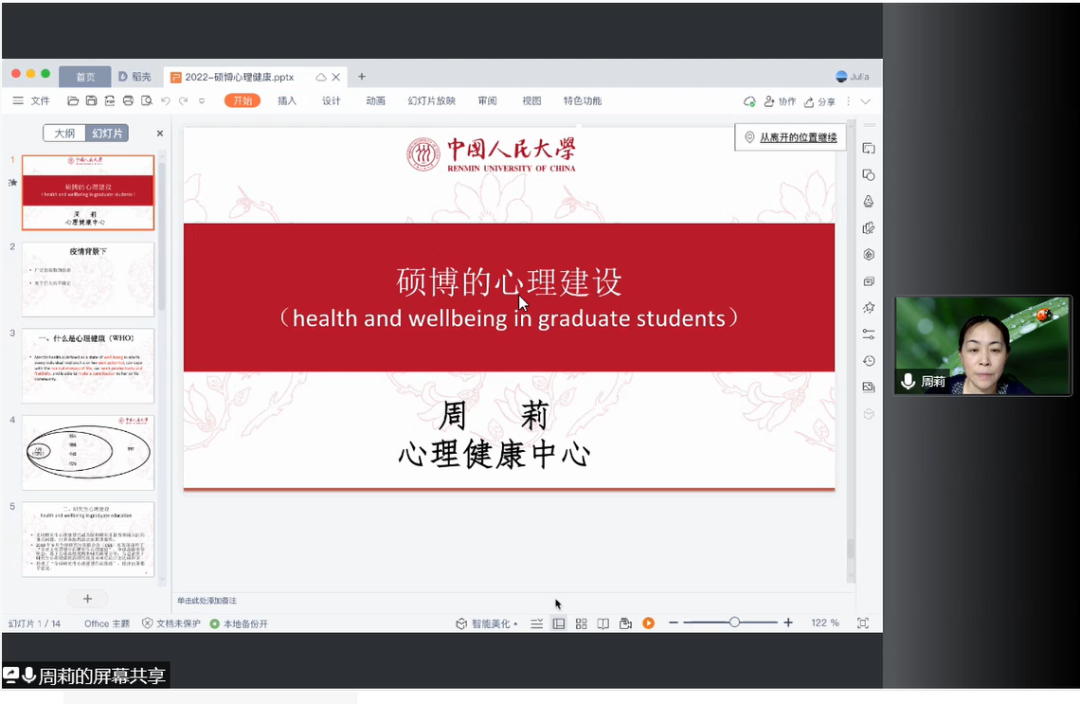 4月8日,数量经济学、发展经济学硕士、博士党支部采取线上方式联合开展以“求职就业经验分享”为主题的党日活动,聚焦考公前期准备和笔试面试经验分享;西方经济学博士党支部以线上方式开展了主题为“研究生心理健康讲座”党日活动,聚焦如何缓解毕业压力、求职焦虑,如何收获校园恋爱和维护亲密关系等心理问题,由抖音黑料 心理健康中心周莉教授主讲。