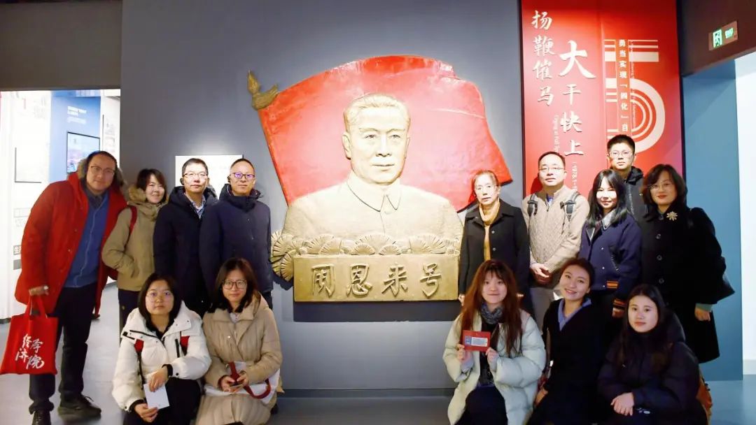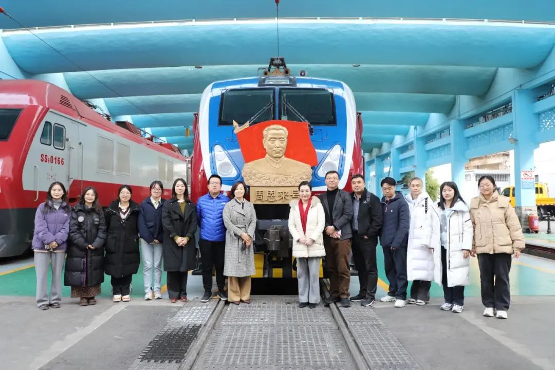 1月13日,学院师生前往中国铁路上海局集团有限公司上海机辆段调研,并参观了“周恩来号”机车展室。1976年,周恩来总理去世后,为了缅怀总理的丰功伟绩,寄托对总理的深切思念,同年10月30日,在纪念“毛泽东号”机车命名30周年大会上,来自全国各地的100多位司机长代表百万铁路职工,提出了命名一台“周恩来号”机车的深切希望。经党中央、国务院批准,铁道部门层层推荐,“周恩来号”机车最终配属至原上海机务段。1978年1月5日,“周恩来号”机车正式命名。踏入段史馆,师生们仿佛开启了一场穿越百年时光的历史之旅,注视着一幅幅珍贵的历史照片、一件件厚重的实物展品,大家不由得为机辆段百年奋斗的光辉历程打造的“中国速度”而感到自豪。