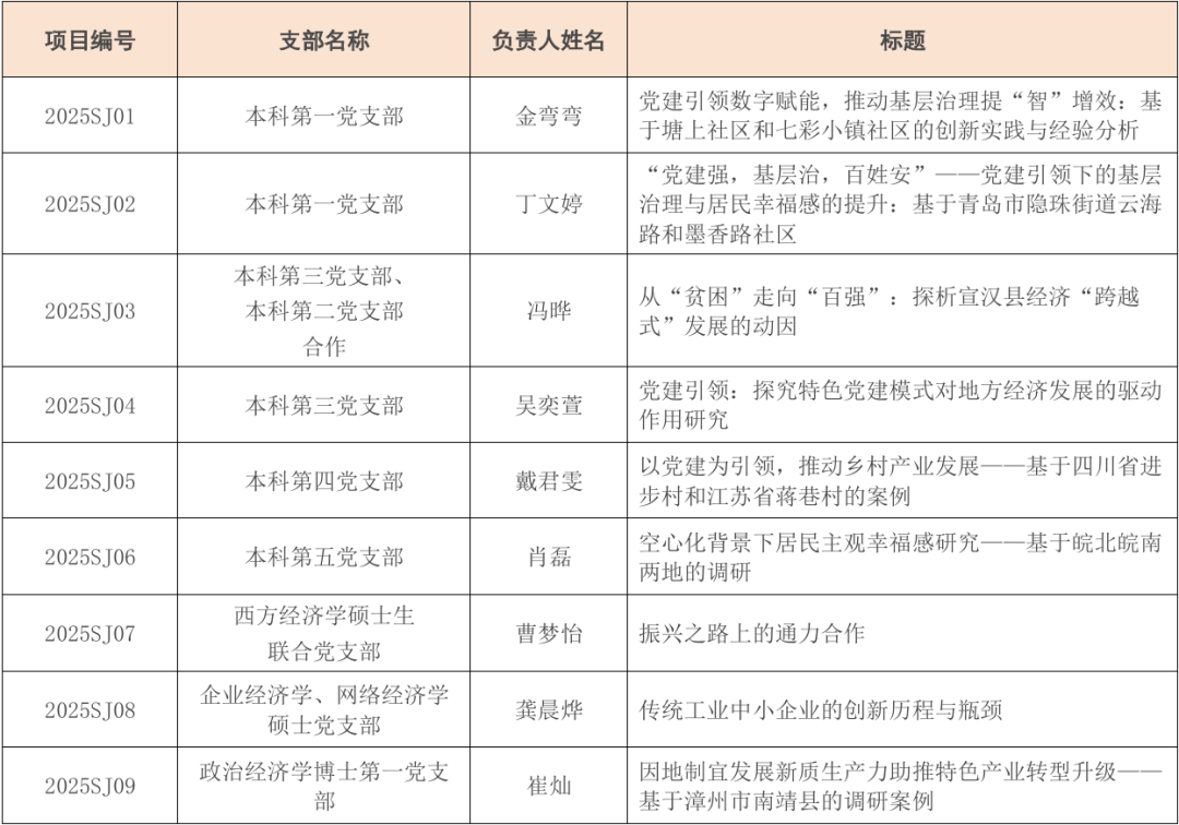 “求实·党建引领实践调研”以企业经济学、网络经济学硕士党支部为代表,由该支部党员龚晨烨介绍项目《传统工业中小企业的创新历程与瓶颈》开展计划:基于项目组成员在“现代化强国千企大调研”的调研基础,通过党支部开展实践经验和研究分享会,进一步加深交流研讨,开启思维碰撞。计划研究聚焦一家蓄电池行业的成功中小企业,回访追踪企业发展,探讨其在行业竞争与融资难双重挑战下的成长路径,形成具有实践价值的案例研究报告。