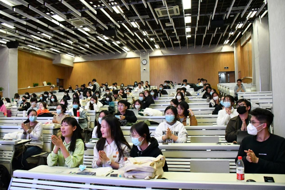 活动最后,同学们共同唱响《南泥湾》。经院合唱团的勋章映着点点灯光,成员的笑颜伴着悠悠乐曲,灵动的歌声满溢整间教室。