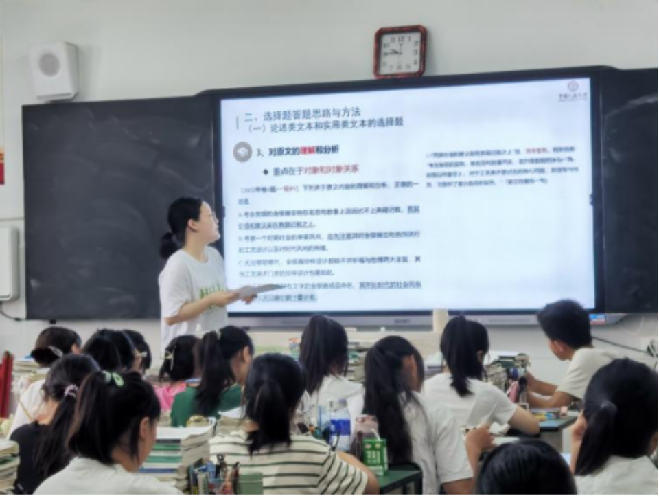 “坚持以人民为中心发展教育,加快建设高质量教育体系,发展素质教育,促进教育公平。”习近平总书记在中国共产党第二十次全国代表大会上为教育高质量发展指明了方向。经过此次支教实践,瞿婷婷对于县镇中学教育的认识更加深刻。她相信党和国家的重视、社会各界的帮助将汇聚成推动县镇中学教育发展的磅礴力量,为全面建成社会主义现代化强国培养更多优秀人才。