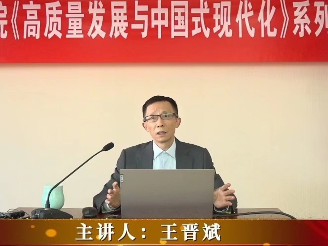 讲座伊始,王晋斌教授从理论层面到实践层面和同学们深入探讨了“经济高质量发展”的内涵。首先是充分发挥市场在资源配置中的作用,建立高水平社会主义市场经济体制;二是把着力点放在实体经济上,加快制造强国、质量强国,建设现代化的产业体系;三是高水平对外开放,包括制度性开放,有序推进人民币国际化。