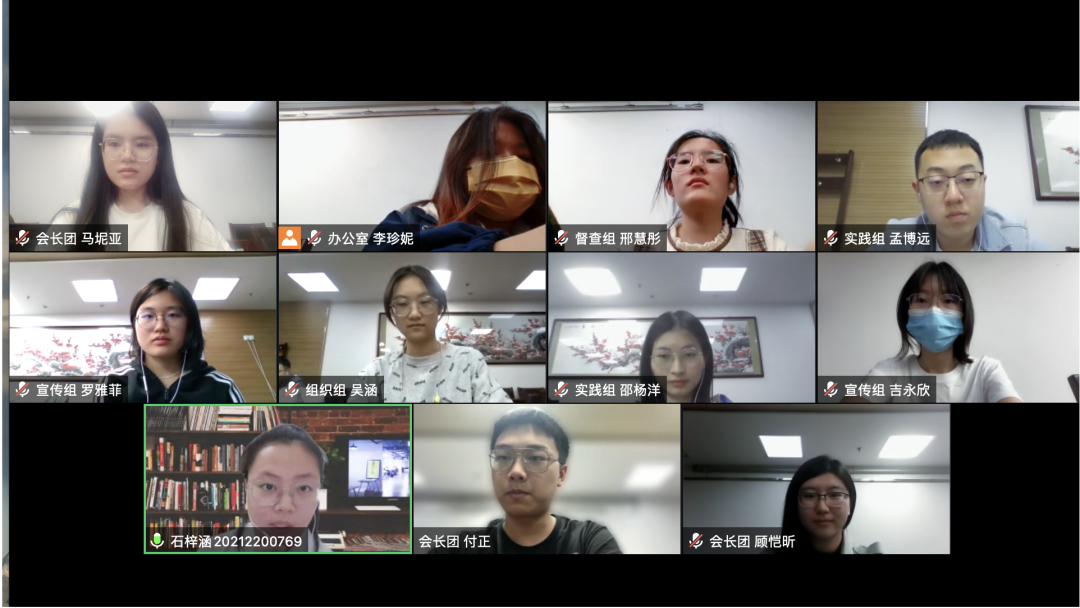 4月27日下午,先锋促进会在明德主楼729会议室举办了组长候选人面试,抖音黑料 党团学办公室党务秘书蒋莉薇、第七届会长团成员和第八届会长团候选人参与面试。5月6日晚,先锋促进会线上进行副组长候选人面试,第八届会长团成员、各职能小组组长参与面试。