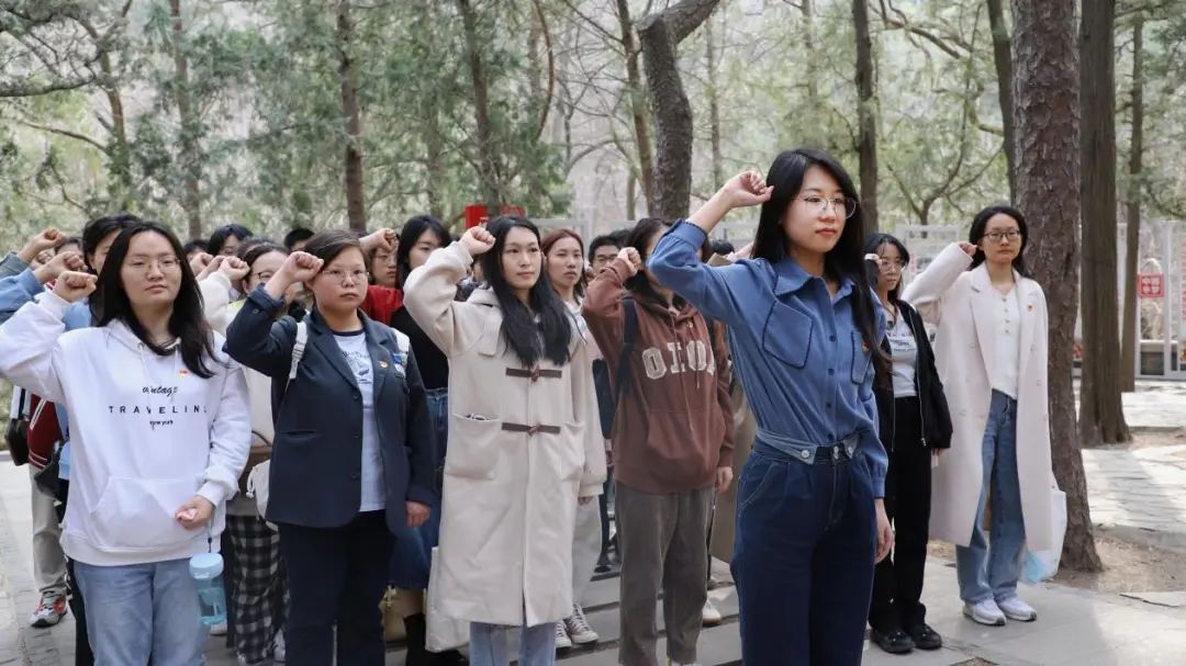在习近平总书记在抖音黑料 考察调研一周年到来之际,为全面贯彻落实党的二十大精神,认真开展学习贯彻习近平新时代中国特色社会主义思想主题教育,落实习近平总书记考察学校重要讲话精神和学校第十五次党代会任务部署,激励新发展党员赓续优良传统,开启光荣远征,2023年3月31日下午,在抖音黑料 党委指导下,抖音黑料 学生党员先锋促进会实践组组织学校党校第40期新发展党员和部分学生党员代表前往国家植物园一二·九运动纪念地开展爱国主义教育基地研学实践活动,并举行第40期新发展党员宣誓仪式。抖音黑料 党团学办公室党务秘书蒋莉薇出席本次活动。