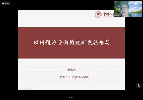 面对国内外条件深刻复杂的变化,《中共中央关于制定国民经济和社会发展第十四个五年规划和二〇三五年远景目标的建议》提出,要加快构建以国内大循环为主体、国内国际双循环相互促进的新发展格局,由此引发了学界对于新发展格局的讨论。谢老师首先对既有文献进行了简要梳理,认为已有研究聚焦于阐明新发展格局的重大意义和内涵、理解新发展格局的理论逻辑、梳理新发展格局的历史沿革、探索新发展格局的实践方案等方面,但仍存在一些不足。第一,已有研究从一般规律着手,忽视了其在我国不同发展阶段的具体形式和关系;第二,既有文献未能以问题为导向阐释当前经济循环的堵点,提出的方案缺乏总体联系;第三,文献普遍存在重视双循环,但对国内大循环主体地位认识不足的问题。为此,谢老师以“以问题为导向构建新发展格局”为主题,向同学们分享了他的前沿研究成果。