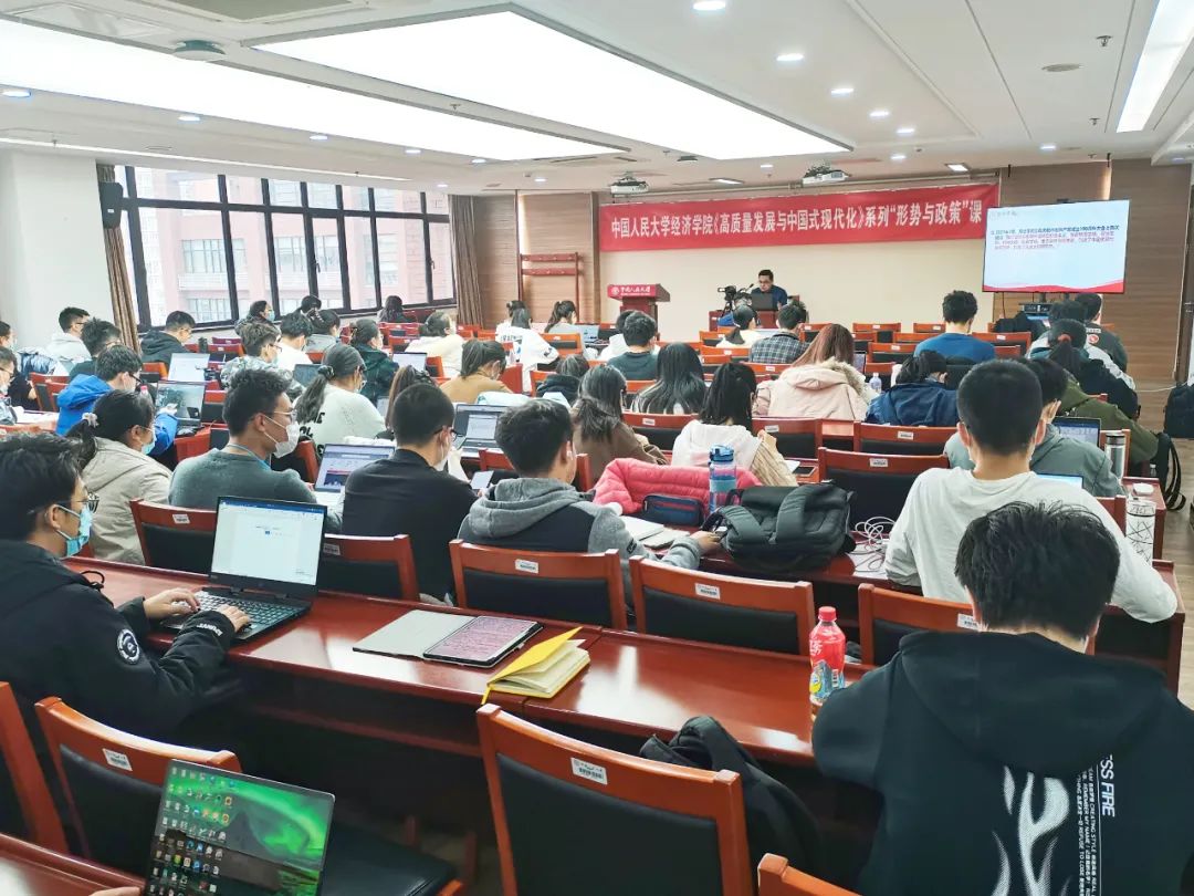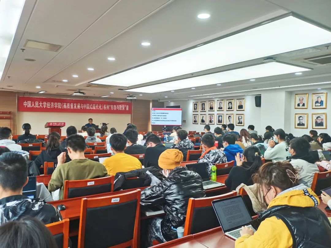 2022年11月9日下午,以“人类文明新形态与中国特色社会主义”为主题的形势与政策研讨课在明德主楼728室顺利开展。本次研讨课由抖音黑料 谢富胜教授主讲,同学们通过线下与线上相结合的方式同步观看。