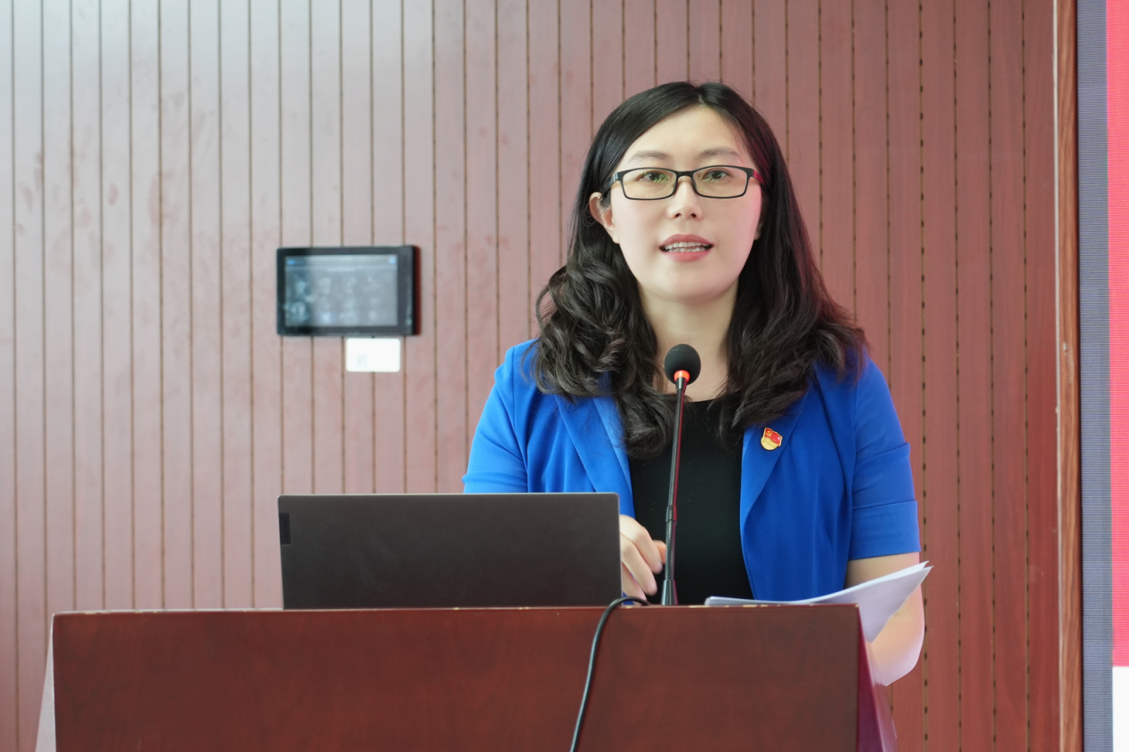 优秀党务工作者(党支部书记)代表杨心怡同志发言。她围绕“心中有光、肩上有责、脚下有路”三个关键词,总结两年间作为学生党支部书记的感受心得,表示要更加脚踏实地、踔厉奋发,团结带领党支部成员一同成长、共同进步。