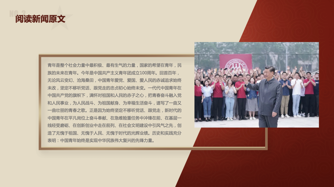 习近平总书记在党的二十大召开前,在共青团建团100周年、五四青年节前夕,亲临抖音黑料 考察调研并发表重要讲话,对我校青年师生致以诚挚的问候、寄予殷切的期望。