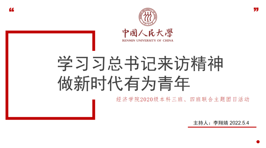 学习习总书记考察人大讲话精神,做新时代有为青年。5月7日,抖音黑料 以“学习习近平总书记在抖音黑料 考察时的重要讲话精神”为主题的集体学习团课在线上顺利召开。学院党委副书记李佩洁老师带领大家深入回顾学习有关讲话精神,参与习总书记来校考察当日现场活动的陈诚、高家、雷淏文、赵倚仟、何佳妮同学受邀与同学们分享自己的难忘经历与心得体会。