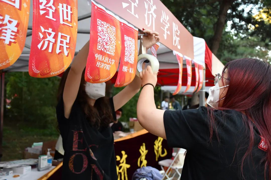 志愿者们正在布置迎新点
