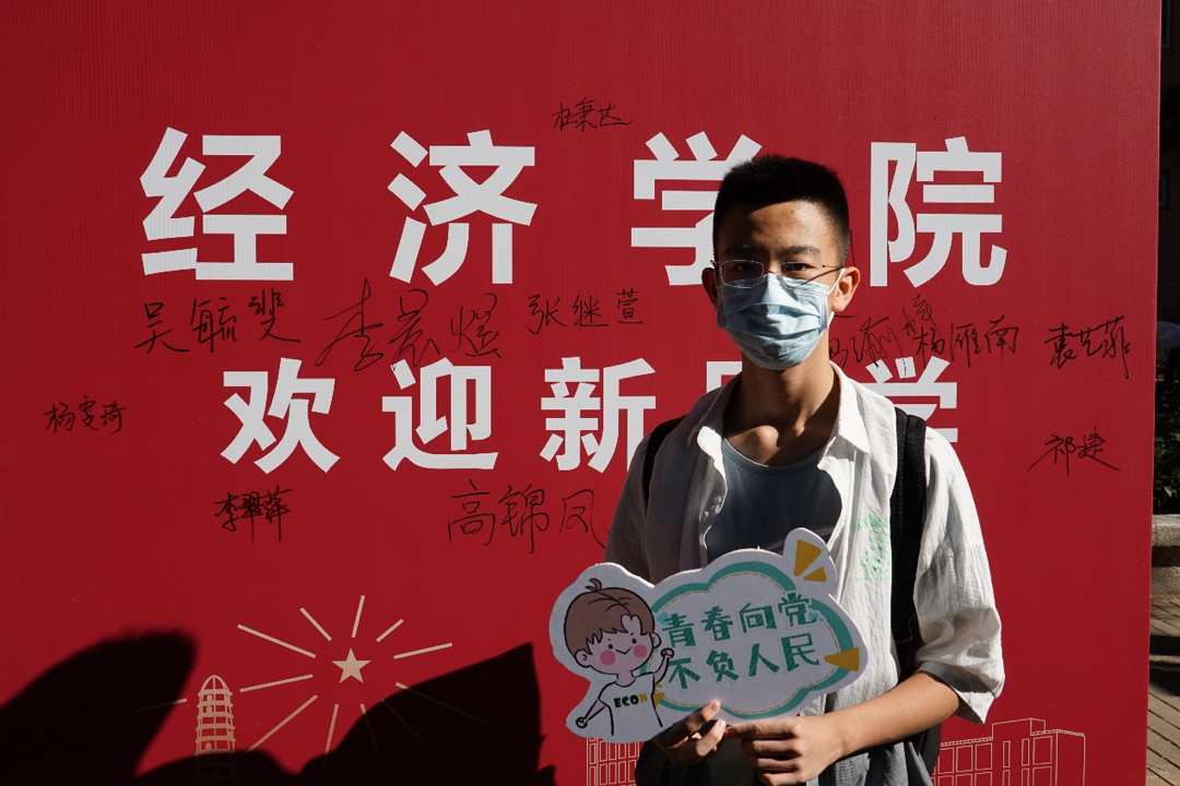 来自于广东佛山的徐一同学表示,进京来到人大是一件非常开心的事情。“青春向党,不负人民”,是她对于人大的第一印象。高中时,她在学习政治这门学科时感到,中国经济走的是一条与其他国家不同但很有活力的道路,既有宏观视角又有微观视角,这激起了她对于经济学科的学习兴趣。未来四年,她希望不忘初心,坚守自己纯粹而又美好的愿望。