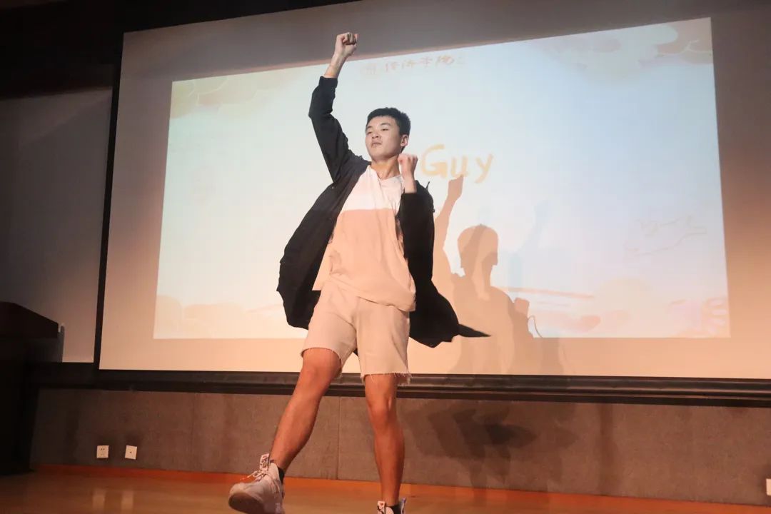 除此之外,我还有一个单人的舞蹈节目。其实我根本没学过跳舞,这一段舞蹈全是自学。即便跳得“张牙舞爪”,我的舞蹈还是被放到了第一个节目来活跃气氛。在开始之前,高铎源师姐还很贴心地帮我修改了几个动作以增加互动。最后的效果肯定是很棒咯,结束之后好多同学找我要了微信~