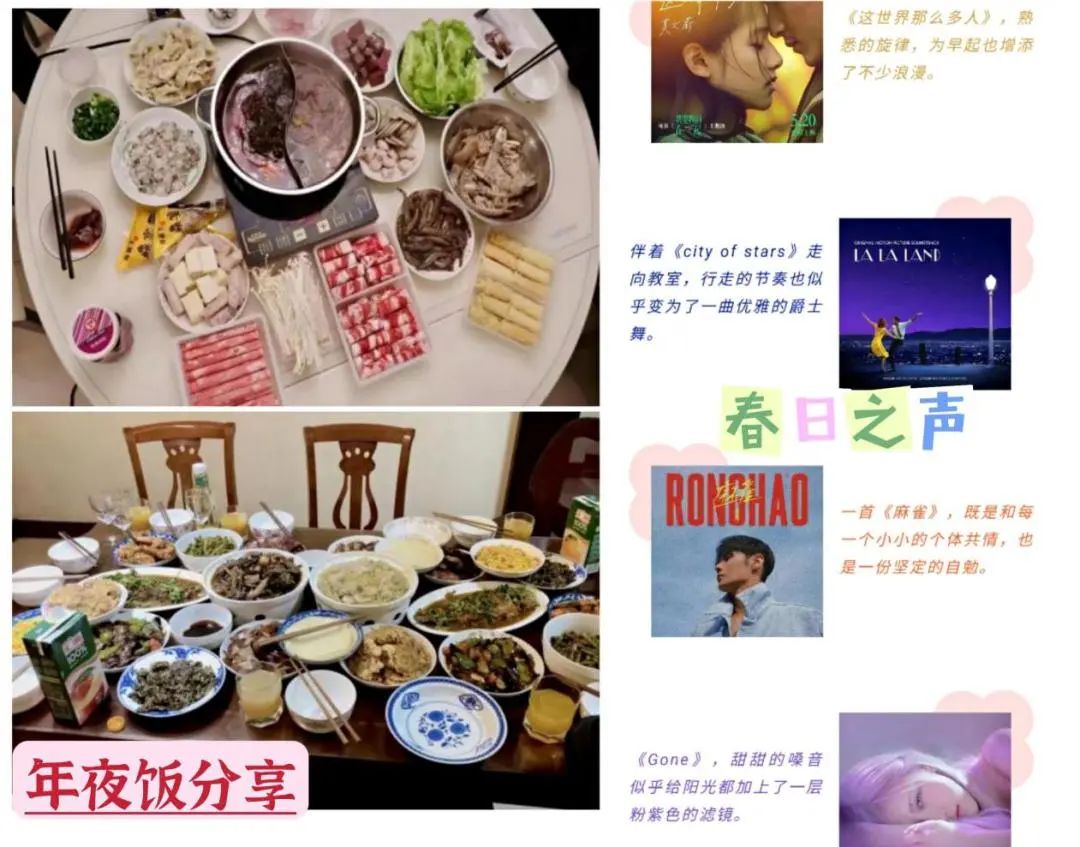 从丰盛美味的年夜饭分享,到春日之声歌唱比赛;从大有裨益的安全馆参观,再到积极锻炼运动打卡,我们热烈地拥抱生活,享受青春。