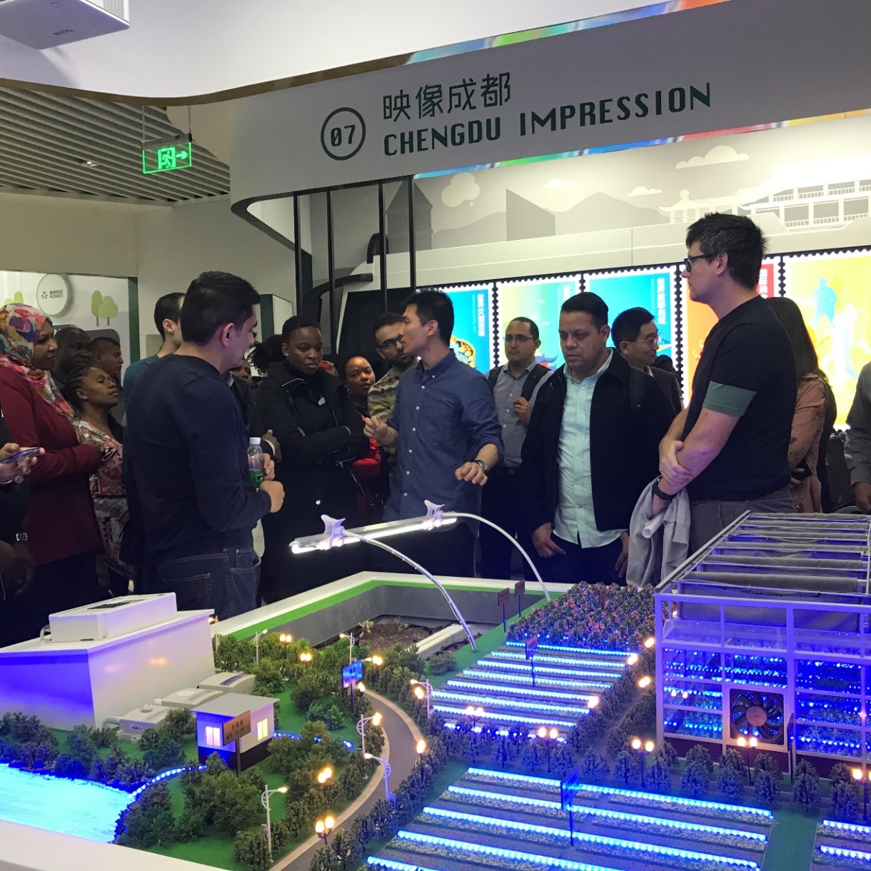 10月23日,官员们参访了成都新经济发展研究院并参加座谈会。在城市推介环节,成都新经济发展研究院副院长张宇,向发展中国家政府代表介绍了成都新经济发展的基本情况、政策体系、经验成效以及成都在“一带一路”倡议中的城市定位,表示成都将以世界的眼光定位城市成长坐标,以开放的姿态融入到全球的创新链、产业链和价值链中,进一步增进与发展中国家在新经济领域的交流合作。在新产品推介环节,智元汇、域上和美、知几未来、鱼鳞图、极致互动、成都大学杂粮国家重点实验室等成都新经济企业及项目代表,展示、推介了各自的新产品、新项目。