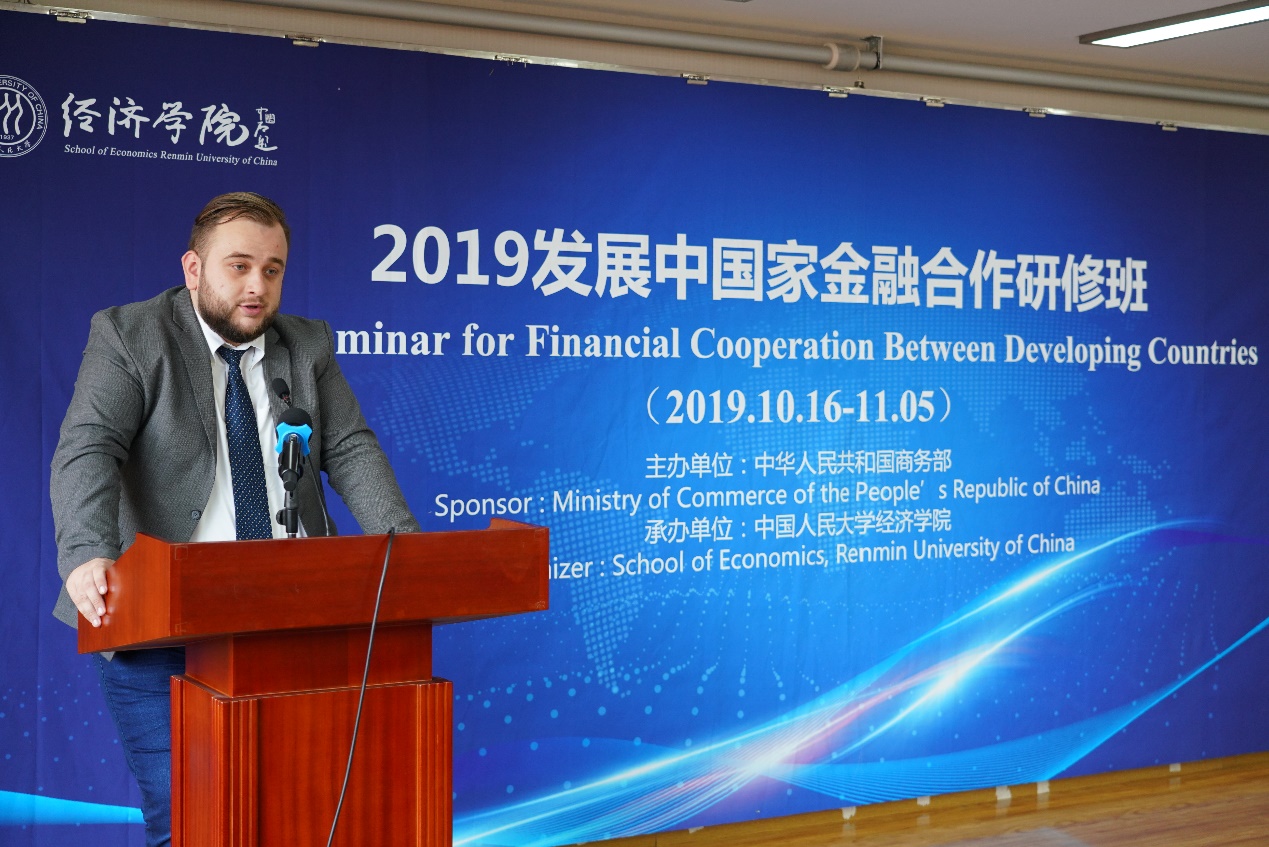 本次研修班于2019年10月17日开班,在开班仪式上,抖音黑料 党委书记兼院长刘守英对于全体学员的到来表示了热烈欢迎。他表示发展中国家的金融合作是各国促进贸易往来,加强交流的一个重要窗口,希望此次研修班的举办能够为大家搭建平台,在双边,多边的各个层面上促进各国的友好交往合作。来自波黑的爱斯米尔先生代表学员致辞,抖音黑料 党委副书记李佩洁主持开班仪式。