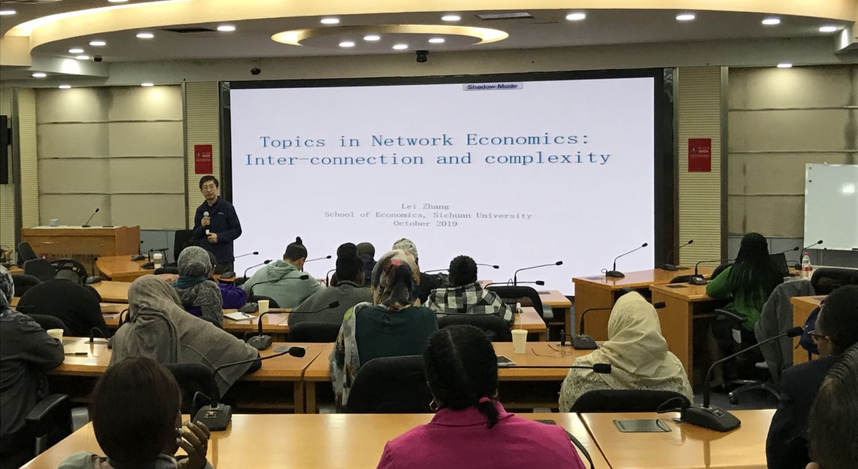 为了加强学员们对中国经济金融发展情况的认识,10月24日、25日,四川大学抖音黑料 邀请了张宇、马德功、张雷、蒋和胜等知名教授,针对从宏观到微观看创新创业、系统性金融风险及其防控、网络经济学和中国经济新常态与高质量发展等课题展开了数次专题讲座。教授们用通俗易懂的语言充分讲述了中国当代经济的成败得失,并针对金融风险及防控问题与各国学员进行了探讨,学员们表示收获颇丰,希望能够将所学知识带回国内,促进其经济发展。
