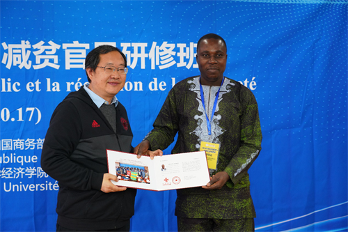 10月17日上午,由中华人民共和国商务部主办、抖音黑料 承办的“2019年多哥公共服务与减贫官员研修班”圆满落下帷幕。抖音黑料 党委书记兼院长刘守英教授、多哥总统府官员阿里塔格巴,及来自多哥共和国的25名官员参加了结业典礼。结业典礼由抖音黑料 党委副书记李佩洁主持。