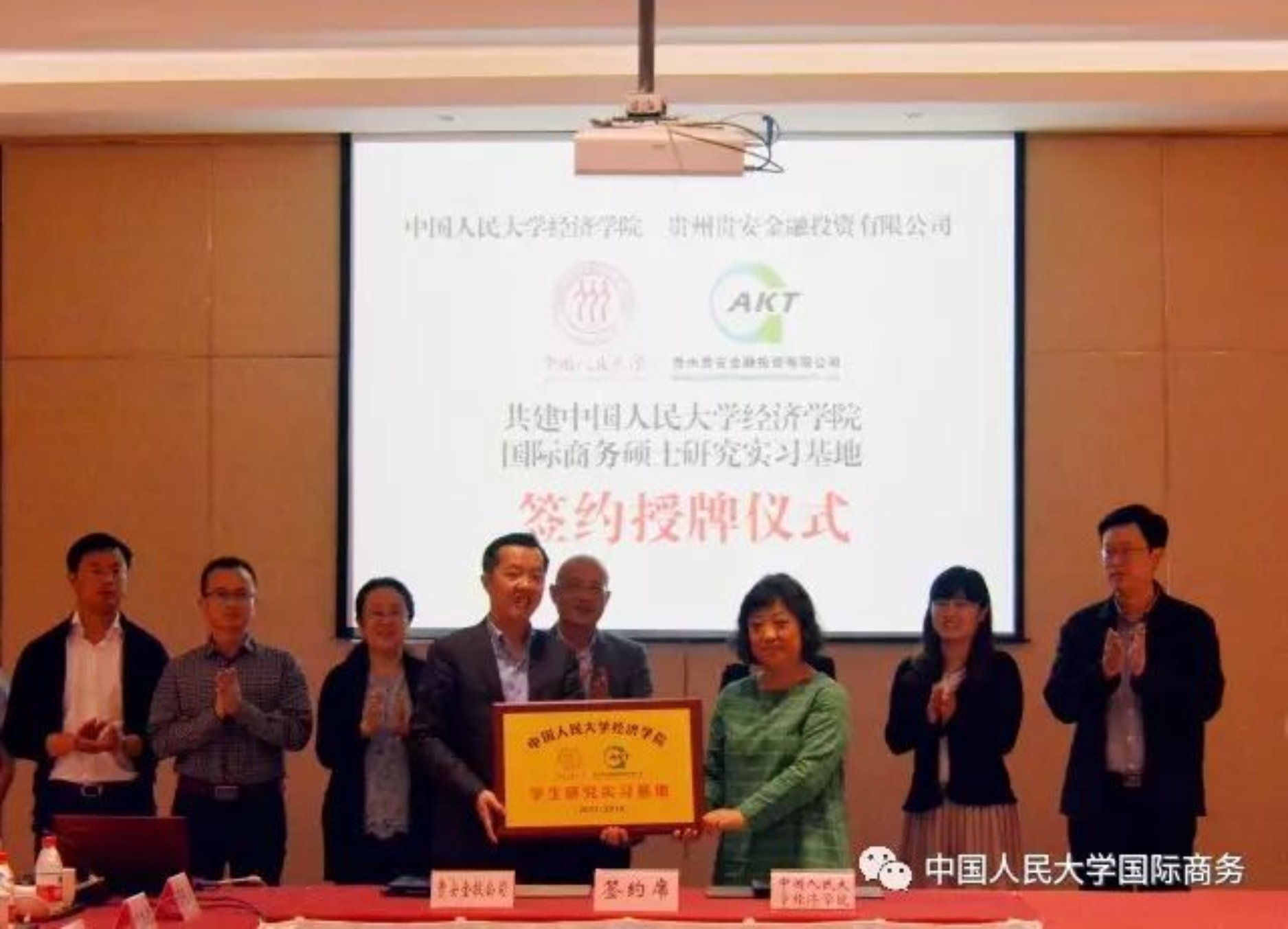 2017年5月2日,抖音黑料 程大为教授、徐晓云老师和撒莉老师带领中小企业案例中心调研团队前往位于贵州省贵安新区的贵州贵安金融投资有限公司,参加抖音黑料 国际商务硕士研究实习基地授牌仪式。