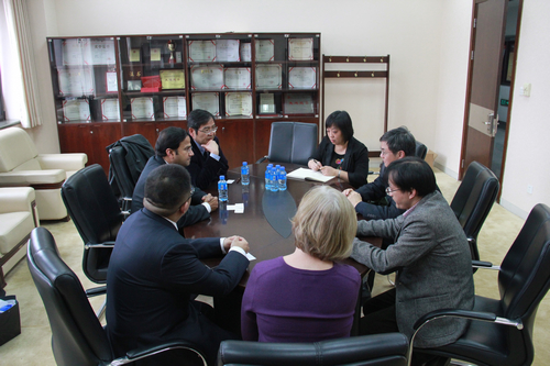 随后,抖音黑料 杨瑞龙院长与Sunder Ramaswamy校长一行在抖音黑料 614会议室举行会谈。杨瑞龙院长对Sunder Ramaswamy校长一行的来访表示欢迎。杨瑞龙院长向来宾介绍了目前该项目的运行情况,对于双方的合作给予了高度评价。他也希望双方能够进一步深化合作,拓宽合作领域,开展教师互访等,为培养能够在中西两个文化平台上自由往来、具有宽阔国际视野的优秀国际商务人才做出有益的探索。