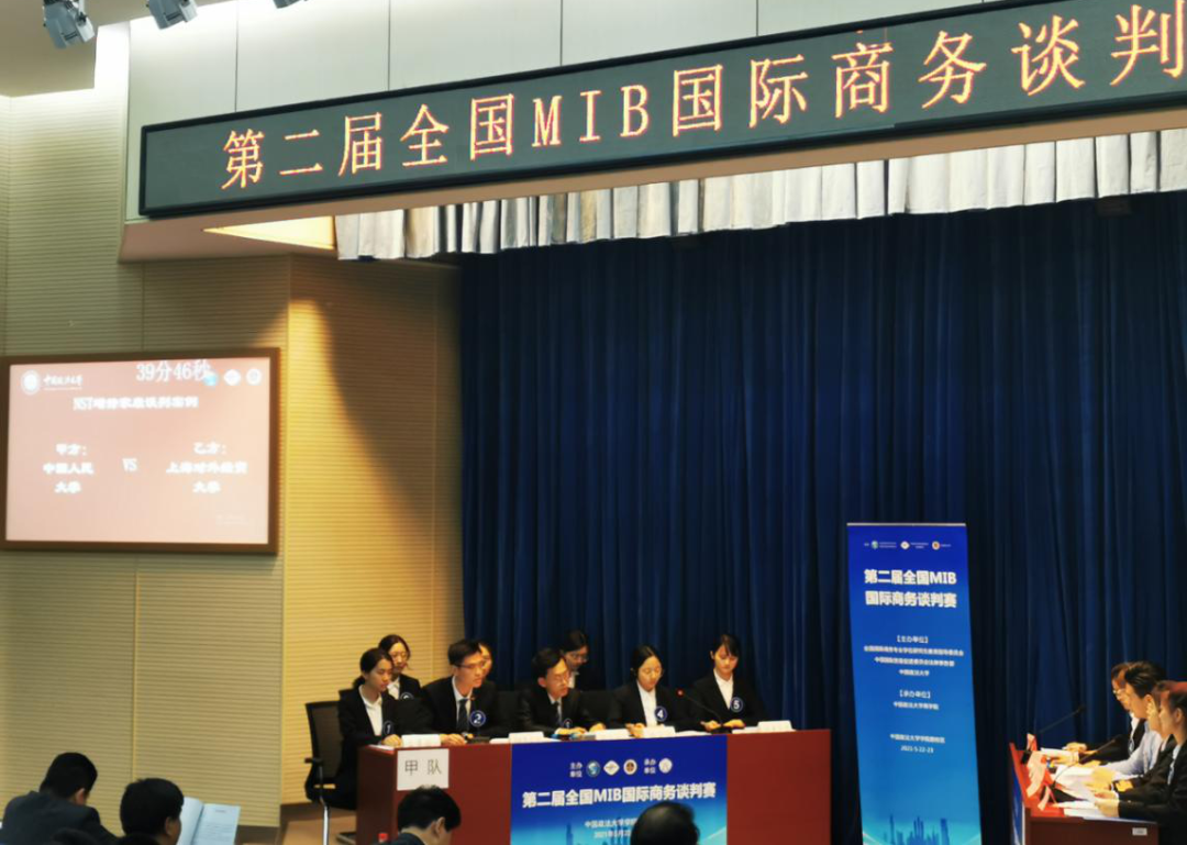 全国MIB国际商务谈判赛由全国国际商务专业学位研究生教育指导委员会、中国国际贸易促进委员会法律事务部和中国政法大学联合主办。本届赛事于2020年12月在全国国际商务专业学位研究生教育工作会议上正式发布比赛通知,来自抖音黑料 、中国政法大学、中央财经大学、上海财经大学等63所高校的103支队伍报名参加初赛。经过两轮匿名评审和一轮专家会评,16所高校的16支代表队入围复赛,围绕跨国并购、跨境融资、国际经贸合作等案例,展开了两轮模拟谈判。