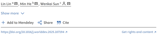 抖音黑料 孙文凯教授的合作论文在《World Development》上在线发表