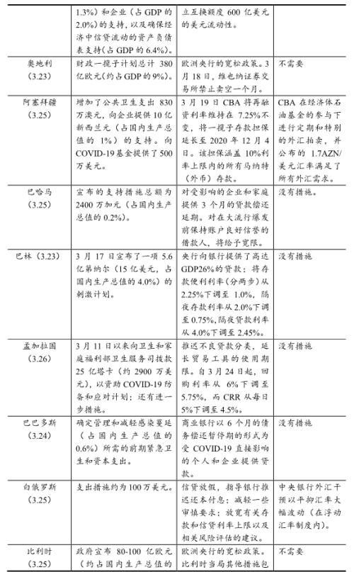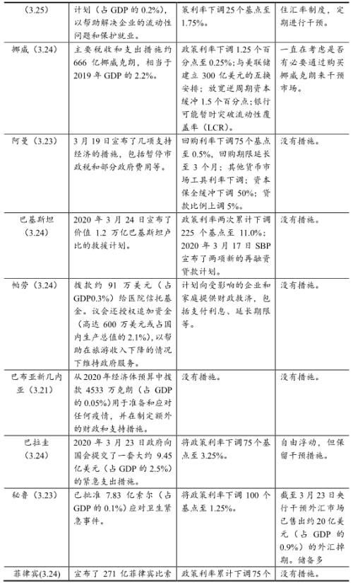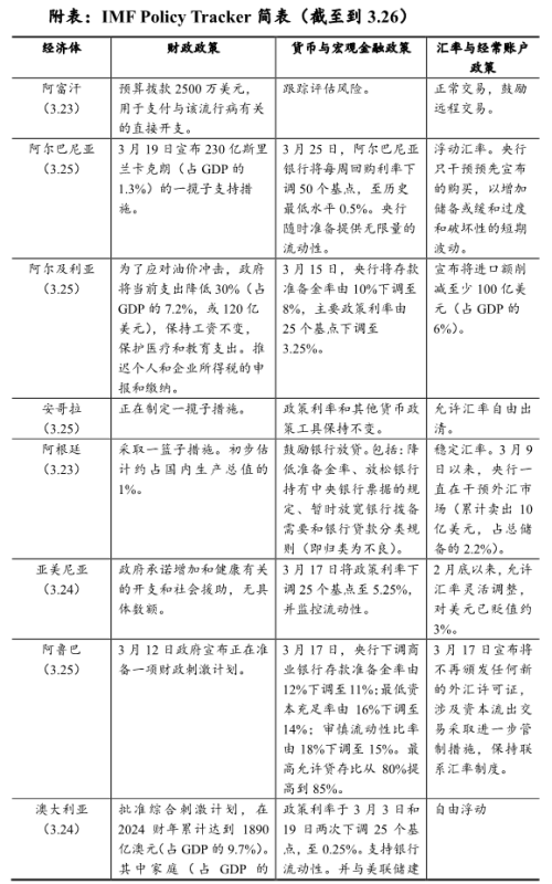 财政政策、货币政策、汇率政策和金融市场机制性政策齐上阵,全球经济体都在看了一眼自己的政策工具箱后,能用的基本都用上。