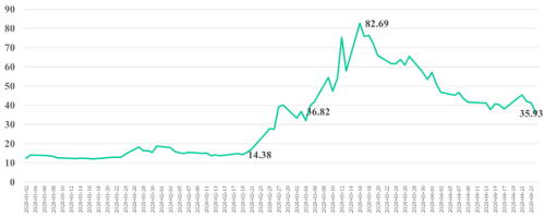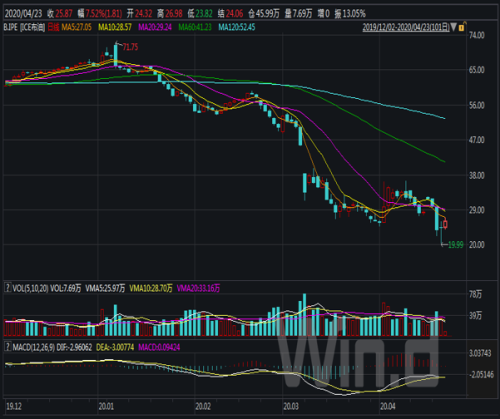 图2、VIX(CBOE波动率):2020年1月2日-4月24日。数据来自WIND。