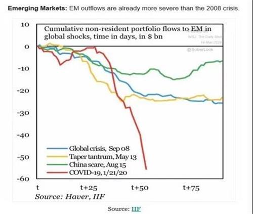 贸易活动急剧萎缩带来美元流动的“冻结”。 IMF最新的《世界经济展望》提供的数据,2020年世界贸易(货物和服务)将下降11%,其中新兴市场和发展中经济体贸易进口和出口分别下降8.2%和9.6%。出口的萎缩带来的必然是经常账户的恶化。