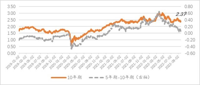 图1显示了10年期和5年期保本美债收益率隐含的中长期通胀率。截至9月23日,10年期美债隐含的通胀预期为2.37%,基本回到2021年3月底的水平。2021年3月份美国通胀率突破美联储长期通胀目标2%,CPI为2.7%(2月份1.7%),PCE为2.5%(2月份1.7%)。从中期通胀率来看,2021年1月中下旬开始,5年期国债隐含的通胀率超过10年期国债隐含的通胀率,打破了次贷危机以来5年期国债隐含的通胀率始终低于10年期国债隐含通胀率的局面,结束了相对短期的低通胀也带着长期的通胀走低,从而进一步加剧了长期的低通胀环境。上述这种通胀预期的顺周期反馈机制在2021年初被打破,美国通胀进入了通胀预期中期高而长期低的逆周期反馈机制,这也意味必然有紧缩周期的到来。