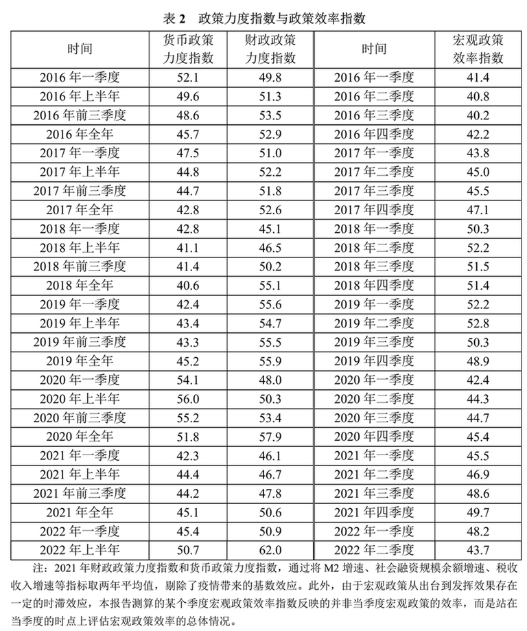 计算潜在增速使用的GDP增速、劳动力、人力资本等指标来源于国家统计局或者根据相关指标计算得到。计算货币政策力度指数使用的M2、社会融资规模存量、DR007等指标来源于中国人民银行或者根据相关数据计算得到。计算财政政策力度指数使用的财政支出、财政收入、宏观税负、赤字率等指标来源于财政部或者根据相关数据计算得到。计算宏观政策效率指数使用的政府债务等指标来源于BIS数据库或者根据相关数据计算得到。