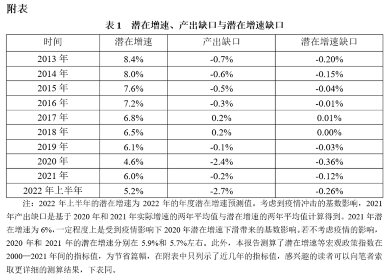 (3)潜在增速缺口:潜在增速缺口等于潜在增速与潜在产出合理增速的差值。本报告采用基于经济波动频域识别的BP滤波法测算得到潜在增速缺口。通过基于经济波动频域识别的BP滤波法对实际产出增长中的超长期、长期、中期与短期部分进行有效估计,由此可以得到潜在产出的长期合理趋势。基于潜在产出水平的长期合理趋势可以计算得到各年度潜在增速的合理水平,将其与实际的潜在增速作差,即可得到各年度的潜在增速缺口。关于潜在增速缺口测算的方法和技术细节,可参见:陈彦斌、陈伟泽,《潜在增速缺口与宏观政策目标重构——兼以中国实践评西方主流宏观理论的缺陷》,《经济研究》2021年第3期。