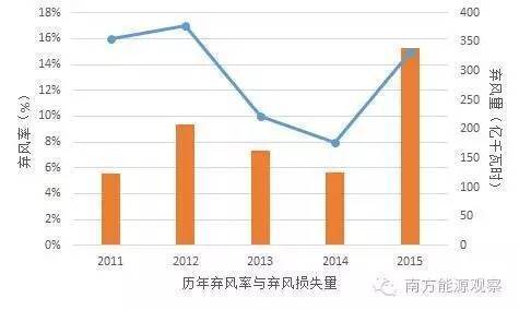 以甘肃为例,2011年和2012年弃风率高达11.7%和24%,但是到2015年装机容量比2012年又翻了一番,单个省份风电装机容量占全国总装量近10%,风电发展区域不均衡进一步加剧。