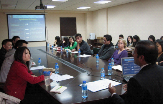 3月19日下午,美国蒙特雷国际研究院院长Sunder Ramaswamy在明德主楼729会议室为2011级国际商务硕士做了题为“Elephants Can Dance: An Assessment of India’s Economic Performance and Potential”的专题讲座。