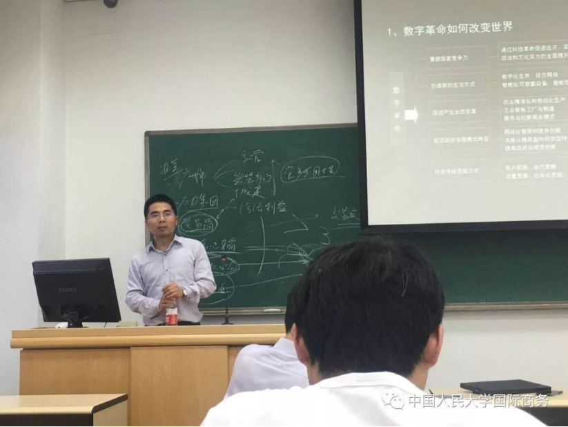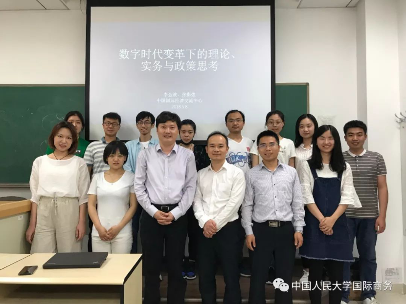 2018年5月9日晚,中国国际经济交流中心产业规划部副部长李金波博士、中国国际经济交流中心副研究员张影强博士来到了国际商务“互联网+案例分析课堂”,为抖音黑料 国际商务硕士研究生带来了一场主题为“数字时代变革下的理论、实务与政策思考”的精彩讲座。